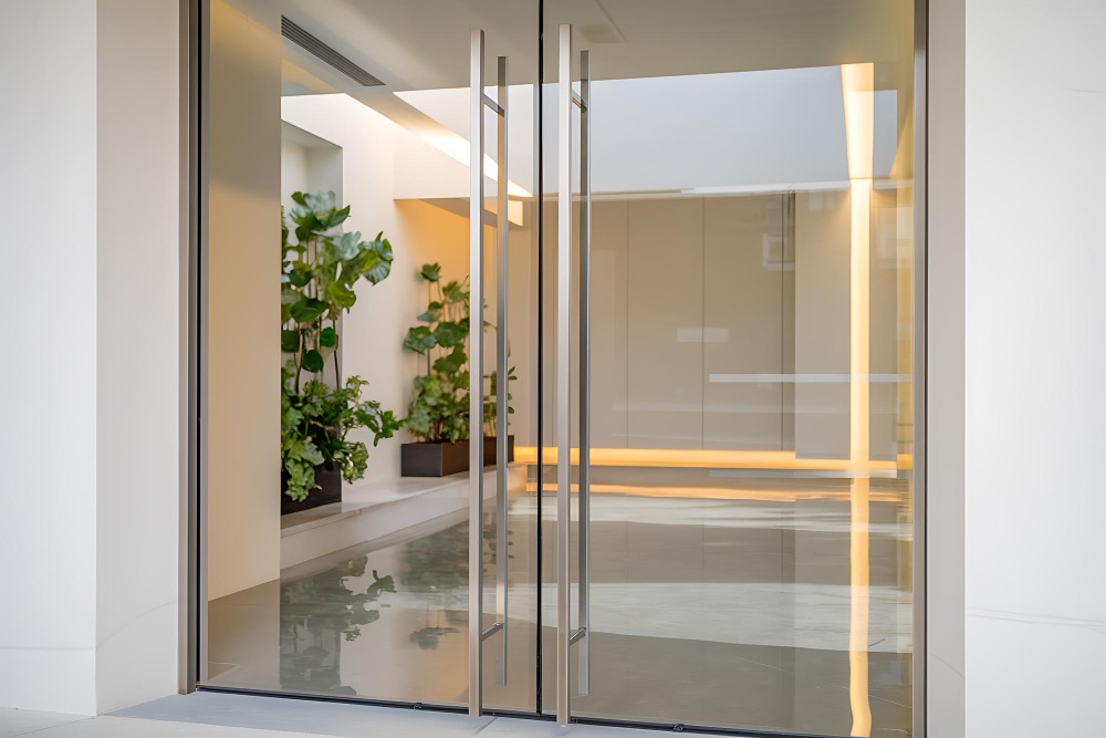 Качающиеся двери имеют ряд достоинств, выгодно отличающих их от обычных входных групп. К ним относят следующие моменты: